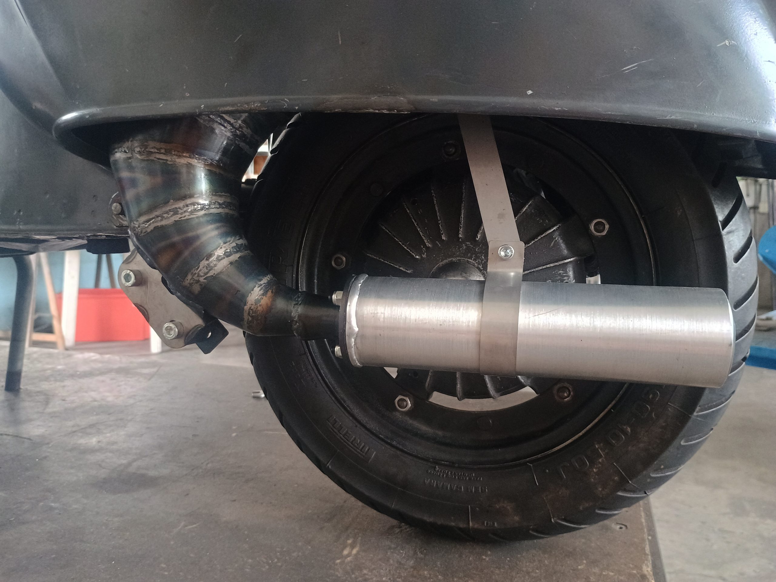 - Collettore marmitta che gira attorno all’ammortizzatore, è necessario tagliare una piccola porzione di carter per il montaggio